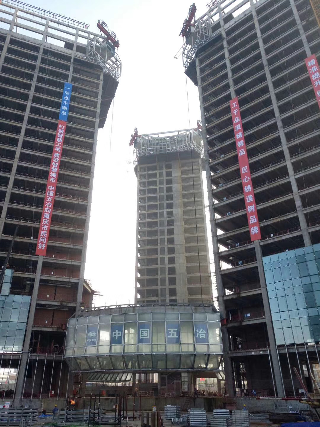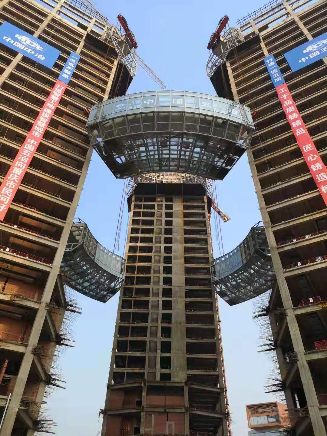 【新聞動態(tài)】重慶數(shù)據(jù)谷---全通透鋼結(jié)構(gòu)高空環(huán)廊成功升頂