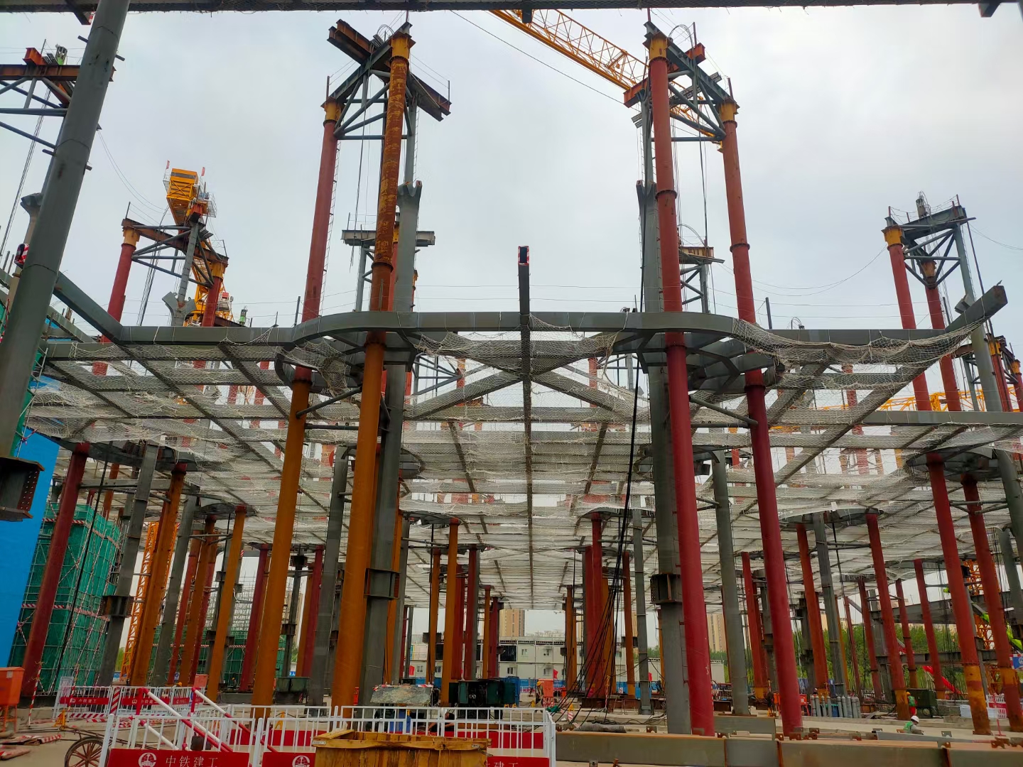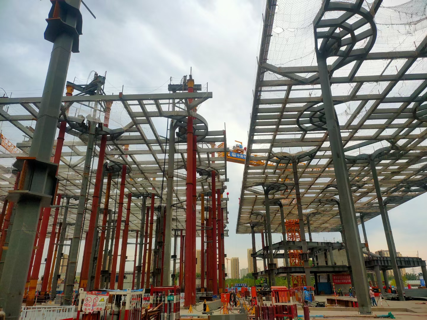 2021年6月8日上午,隨著第四區(qū)鋼結(jié)構(gòu)屋蓋被提升就位,位于城市綠心森林公園西北部的城市副中心圖書館項(xiàng)目實(shí)現(xiàn)結(jié)構(gòu)封頂。從高空俯瞰,圖書館撐起一個(gè)由144片“銀杏葉”組成的“森林傘蓋”。圖書館的設(shè)計(jì)理念源于中國(guó)傳統(tǒng)文化符號(hào)“赤印”,造型別致,整個(gè)項(xiàng)目安裝144根葉片鋼柱,每根鋼柱未來(lái)都將被裝飾成“樹干”,屋頂由144片形如銀杏葉片的鋼結(jié)構(gòu)拼接而成,猶如傘蓋,為市民營(yíng)造出置身森林之感,因此圖書館又名“森林書苑”。整個(gè)屋蓋采用整體提升技術(shù),先在地面將屋蓋鋼結(jié)構(gòu)拼裝好,然后通過液壓系統(tǒng)將屋蓋整體抬起,后與圖書館柱頂對(duì)接。由于屋蓋鋼結(jié)構(gòu)跨度大、噸位重,因此整體屋蓋被分為4個(gè)區(qū)域分區(qū)進(jìn)行提升。區(qū)域有38個(gè)葉片,面積達(dá)7400平方米,提升重為1400噸,總共提升重量為4185噸。