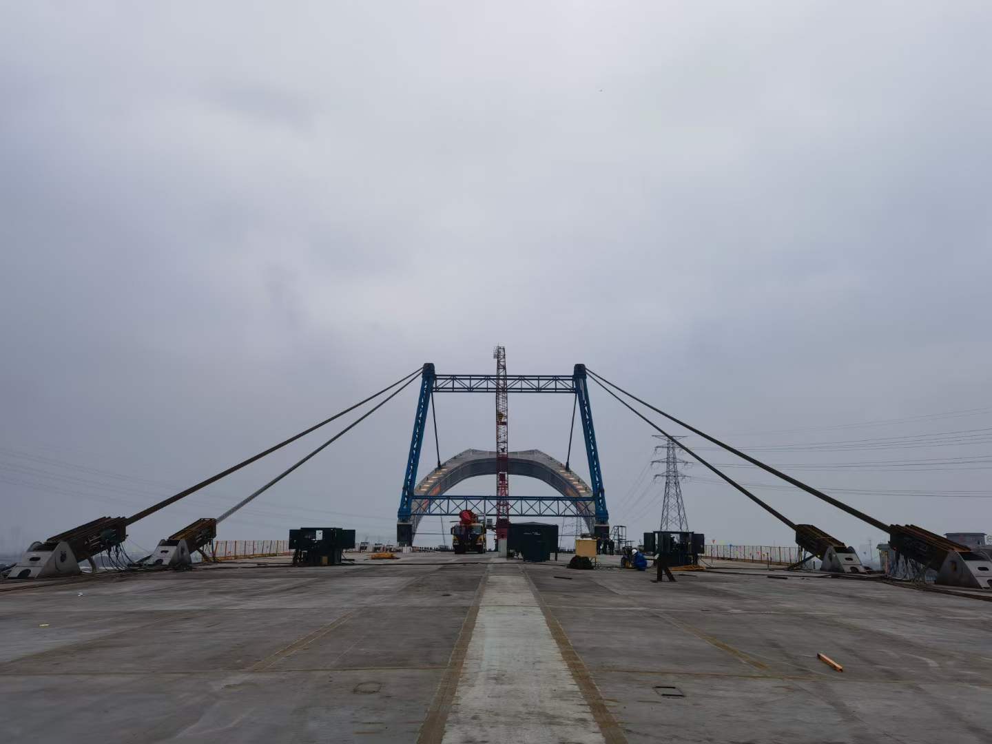 2022年1月18日,經(jīng)過(guò)16小時(shí)的連續(xù)施工,寧波西洪大橋主橋鋼塔完成了節(jié)點(diǎn)性工序—主塔90°豎轉(zhuǎn),轉(zhuǎn)體施工由上海同新機(jī)電控制技術(shù)有限公司負(fù)責(zé)完成。主塔外形為弧形門式,采用“臥式拼裝,整體豎轉(zhuǎn)”