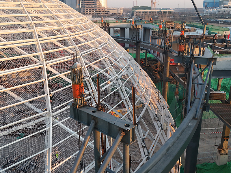 上海同新機(jī)電控制技術(shù)有限公司負(fù)責(zé)施工方案優(yōu)化設(shè)計(jì)、結(jié)構(gòu)計(jì)算和整體提升施工,為超高大跨徑單層穹頂屋蓋結(jié)構(gòu)安裝實(shí)施提供最優(yōu)解決方案。