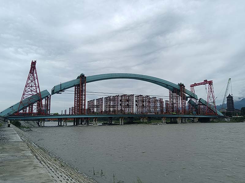 都江堰青城大橋主拱鋼拱肋提升工程