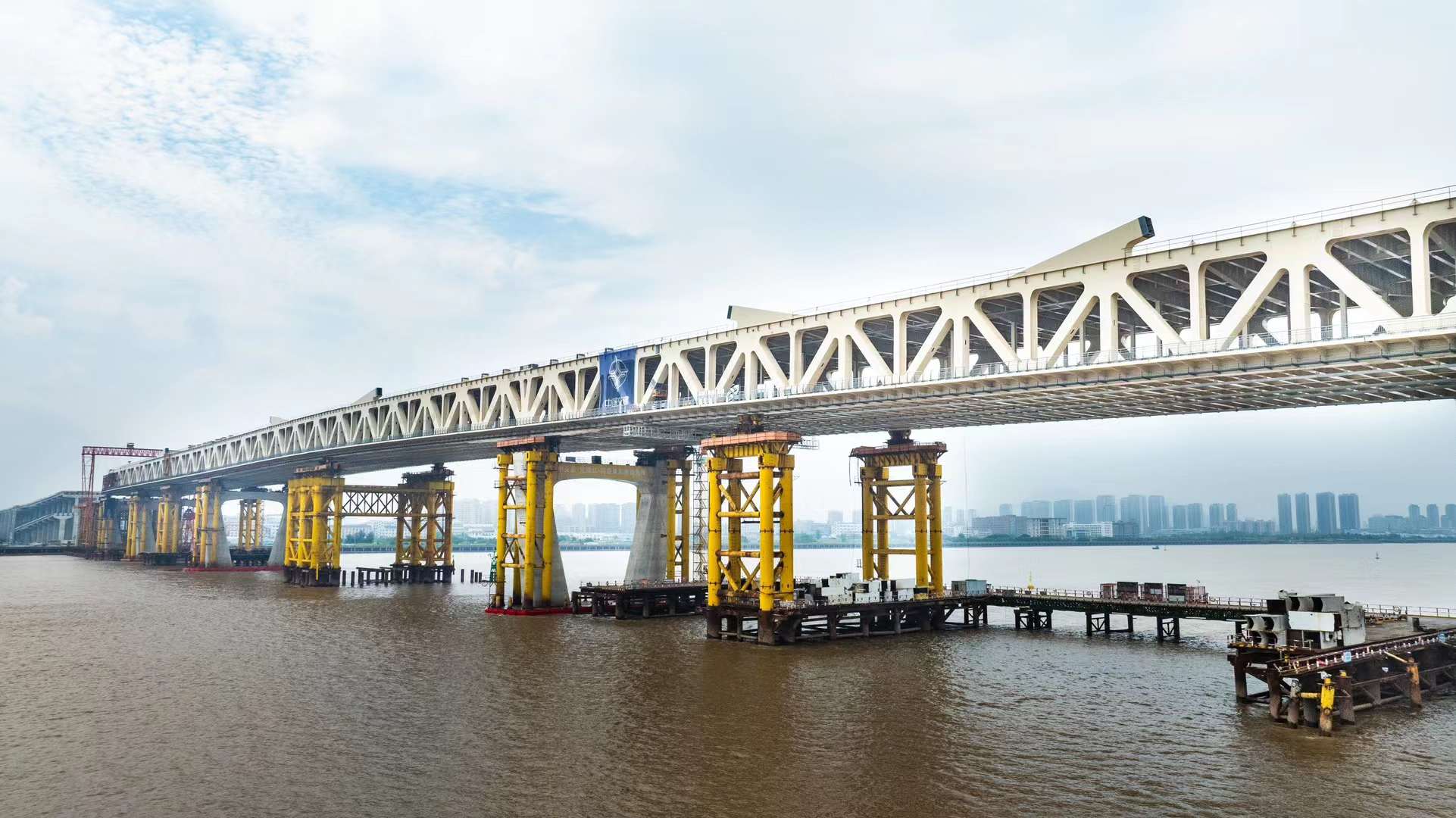 浙江瑞安永寧大橋主橋鋼桁架頂推到位