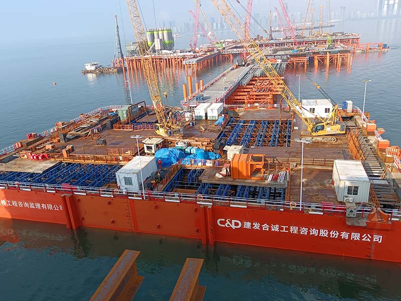 同新工程 2024年8月31日 2024年8月30日晚,廈金大橋(廈門段)東錨碇邊跨側(cè)鋼沉井成功著床后,繼2024年7月8日主跨側(cè)鋼沉井成功著床,至此,東錨碇前、后井2個(gè)鋼沉井均已完成著床,標(biāo)志著項(xiàng)目成功攻克鋼沉井施工難題,全面進(jìn)入海上施工階段。前、后沉井平面尺寸均為66×48m(橫橋向×順橋向)。主跨側(cè)沉井高為21.8m...