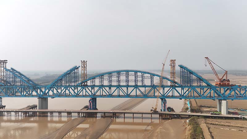 雄商高鐵黃河特大橋五個(gè)鋼拱肋順利提升合龍