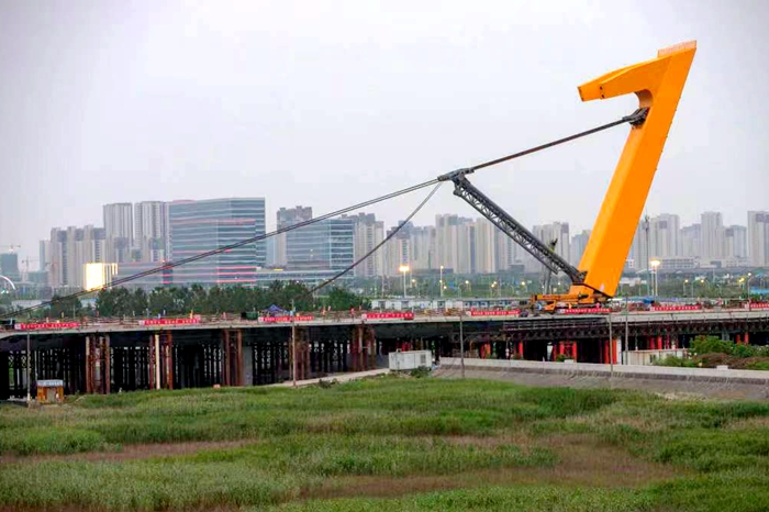 眉山岷江大橋主塔豎轉(zhuǎn)成功就位