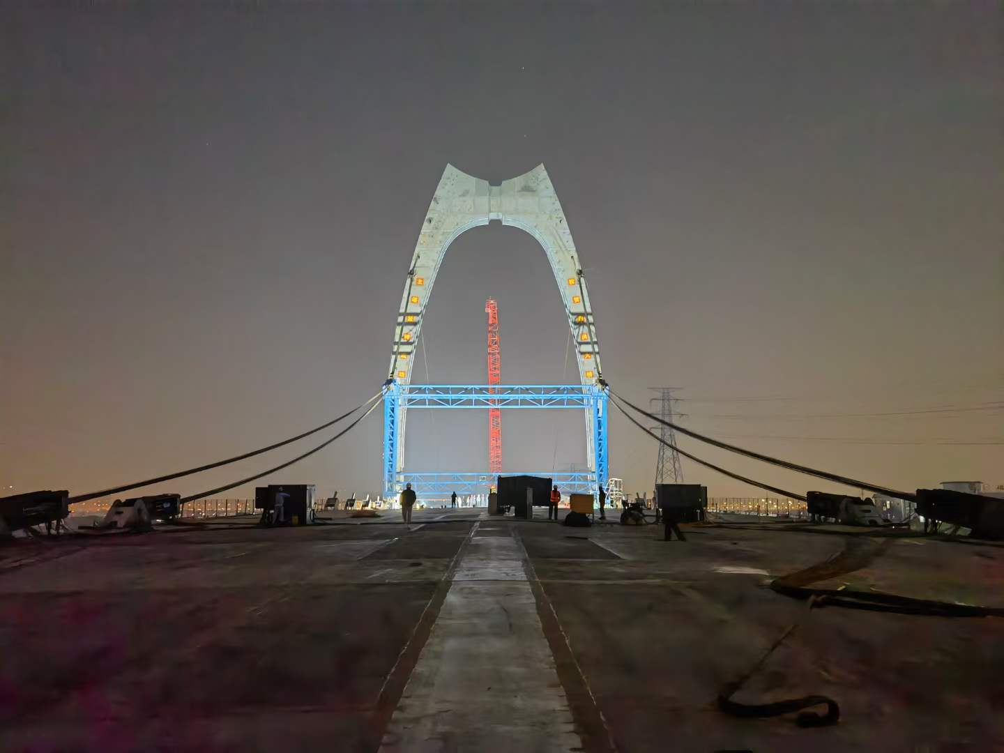 上饒稼軒大橋主塔豎轉(zhuǎn)成功就位
