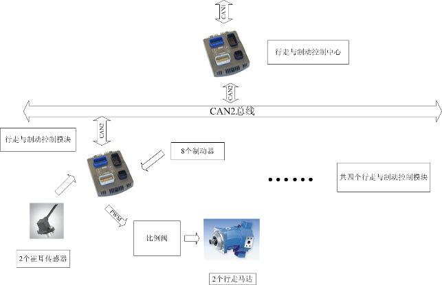 提梁機電控系統(tǒng)采用CAN總線分布式控制系統(tǒng),全車共有16個車載控制模塊。