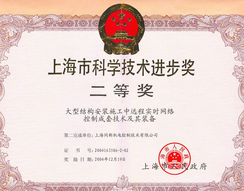 上海市科技技術(shù)進(jìn)步獎二等獎